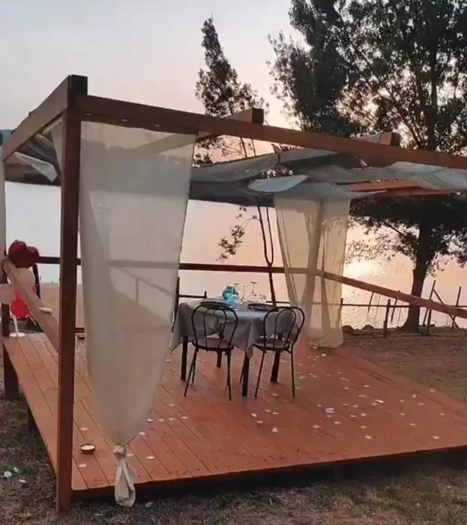 La Terrazza sul Lago é un ristorante, braceria, pizzeria che si affaccia sul lago della Gabelletta di Monterosi, con un parco privato di 5000 mq. immerso nel verde, che si estende sino sulle rive del lago. Il ristorante gode di una location unica, perfetta per ospitare eventi di ogni genere, dai matrimoni alle comunioni, dai meeting di lavoro a banchetti di ogni sorta, godendo di una vasta terrazza esterna e di tre sale interne, per un totale di oltre 200 coperti. C’è anche la possibilità di cene privé direttamente sul pontile con servizio dedicato. La cucina offre primi e secondi a base di carne e pesce fresco, opzioni per vegetariani e vegani, una vasta selezione di manzi con svariati gradi di frollatura e marezzatura e la pizza al forno a legna, per non dimenticare la pasticceria artigianale che propone numerosi dolci fatti in casa per stuzzicare il palato degli ospiti; il tutto senza giorno di chiusura. Operativi 7 giorni su 7, sia a pranzo che a cena. É gradita la prenotazione.